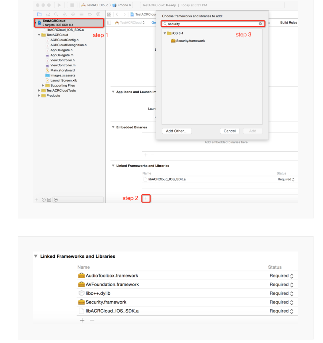 按照要求添加对应的依赖库,这里我没有找到cocoapods的,所以手动添加了,注意还要添加麦克风支持