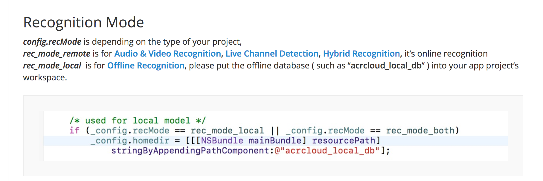 因为SDK支持本地库,所以搜索的模式需要自己定义,在线识别(recmode)还是离线识别(recmodelocal)
