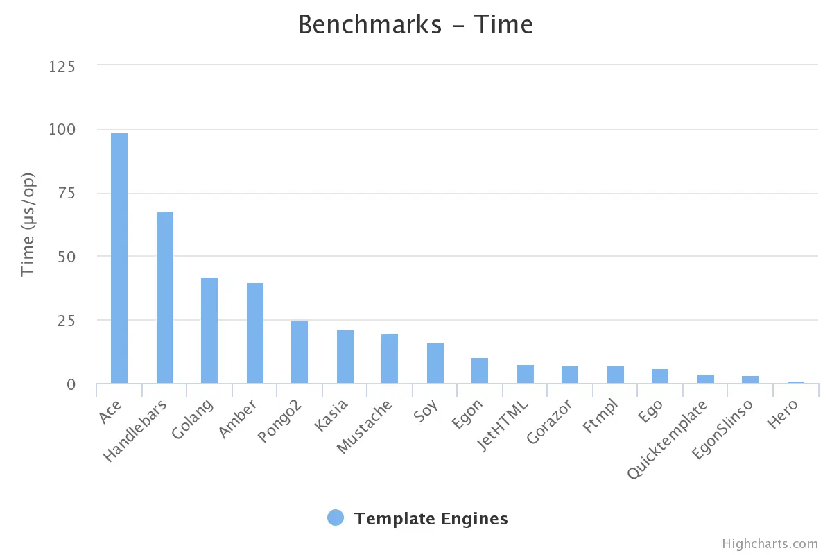 Go语言模板引擎其实主要分两大类,一类是非预编译生成Go代码的模板引擎(如以上提及的这些),另一类则是预编译生成Go代码的模板引擎,这一类模板引擎由于先天优势,性能将更为出色一些,是否采用这类引擎,要看你项目的需求来权衡。这类引擎的佼佼者是hero,也是一位国人开发的Go语言模板引擎库。