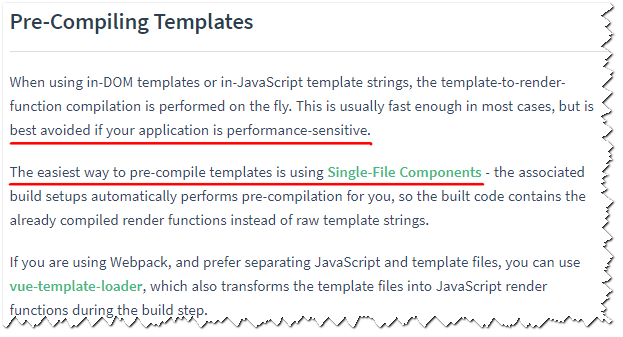所以我们判断频道首页在 iOS版京东APP 中加载速度慢的原因是:性能低下的 UIWebView 在编译逻辑复杂的频道首页 Vue.js 模板时耗时过多。那么,怎么解决这个问题呢?等待 APP 升级 WKWebview 明显解决不了燃眉之急。要解决当下的问题还得从页面自身入手。我们计划尝试把模板编译工作拿到本地来做,减轻浏览器负担。