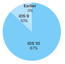 ▲ 苹果官方的 iOS 版本分布数据(数据截至2017年7月)