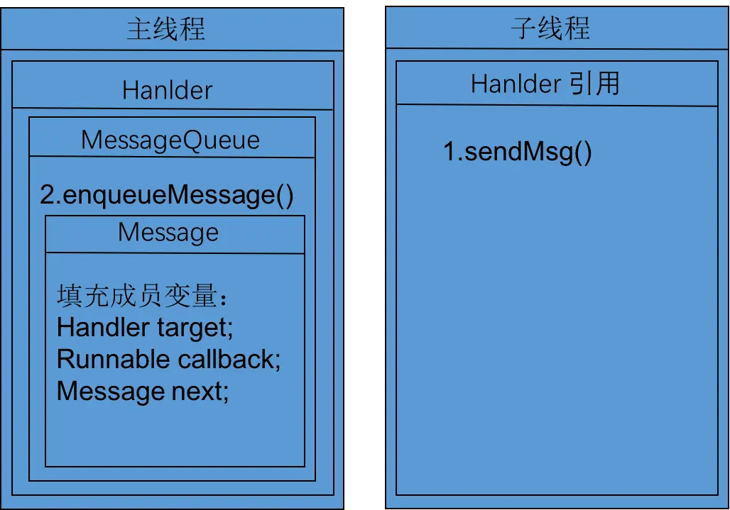 到这里,我们了解到的就是一个 Handler 的黑盒机制,子线程发送,主线程接收。接下来,我们不介绍什么 ThreadLocal、Looper 和 MessageQueue。而是直接从上面的代码引出它们的存在,从原理了解它们存在的必要性,然后在谈它们内部存在的细节。