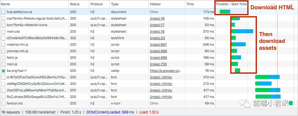 而添加 HTTP2.0 server push 之后为: