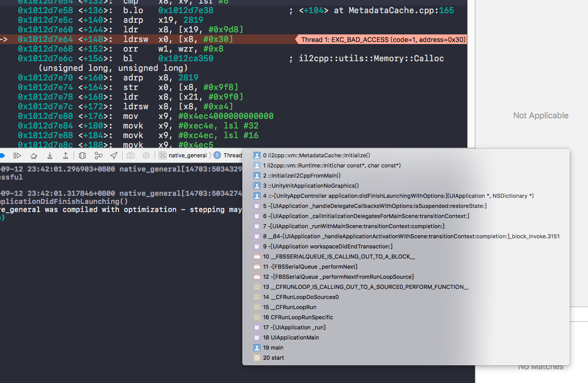 - 编译成功后,APP启动时crash:il2cpp::vm::MetadataCache::Initialize{}