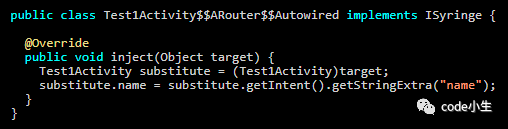 用Autowired生成Test1Activity?ARouter?Autowired类,用inject方法找到AutowiredServiceImpl方法,AutowiredServiceImpl调用到Test1Activity?ARouter?Autowired