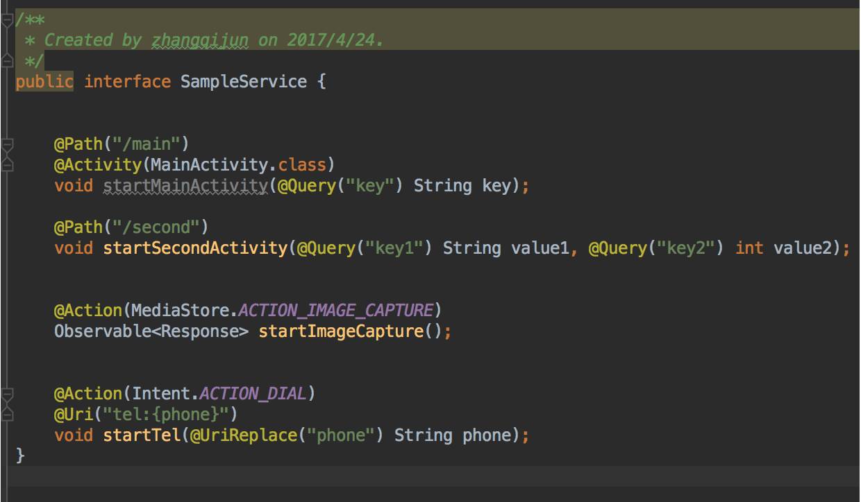 但是如果用到MVP模式,不是在Activity里面调用路由,后面会支持在这些类里面自动注入SampleService,现在先用java代码build