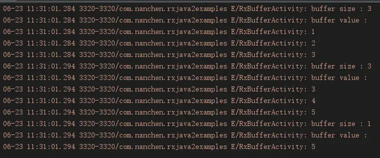 mRxOperatorsText.append("buffer size : " + integers.size() + "\n");