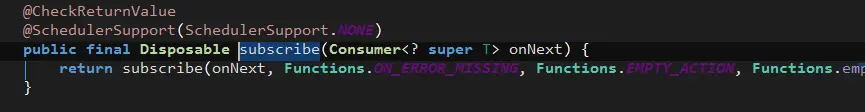 如同 Log 日志一样,第一次延迟了 3 秒后接收到,后面每次间隔了 2 秒。 然而,心细的小伙伴可能会发现,由于我们这个是间隔执行,所以当我们的Activity 都销毁的时候,实际上这个操作还依然在进行,所以,我们得花点小心思让我们在不需要它的时候干掉它。查看源码发现,我们subscribe(Cousumer<? super T> onNext)返回的是Disposable,我们可以在这上面做文章。
