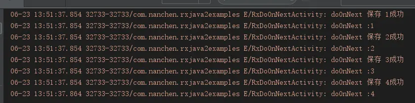 Log.e(TAG, "doOnNext 保存 " + integer + "成功" + "\n");