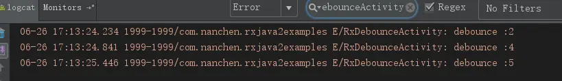 mRxOperatorsText.append("debounce :" + integer + "\n");