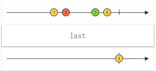 last 操作符仅取出可观察到的最后一个值,或者是满足某些条件的最后一项。