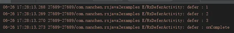 mRxOperatorsText.append("defer : " + integer + "\n");