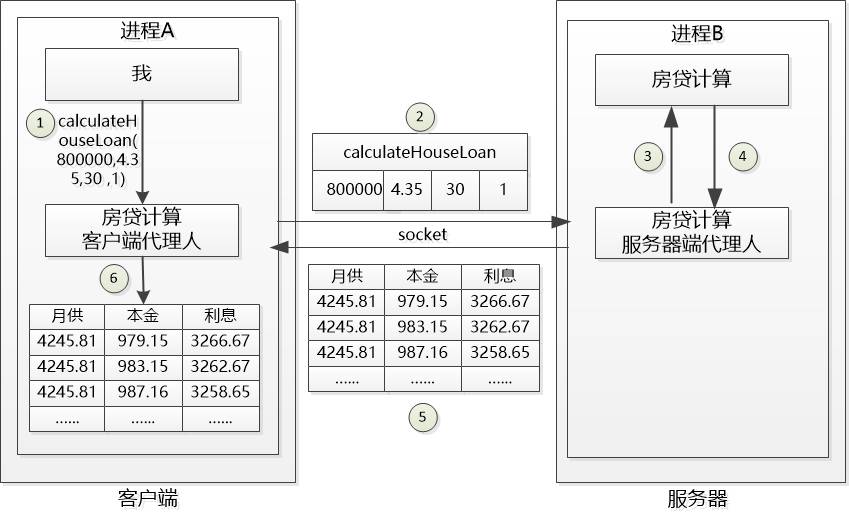 “没错, 我还有个好基友,在服务器端忙活, 我和他约定好了消息的格式, 你交给我的数据其实我都通过socket发给他了,由他来调用真正的房贷计算, 然后再把结果发回来。”