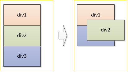 还可以设置成相对于某个父元素做绝对定位(下图中祖先元素就是橙色的框,div2原来的位置被div3占据了) 。