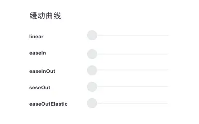 - easeInOut(头尾缓、中间快)通常在轮转切换的动画中使用,这类动画的触发对象与运动对象并不是同一个元素。