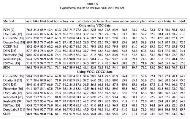 表 5. 我们的方法在 PASCAL VOC 2012 测试集上的实验结果。