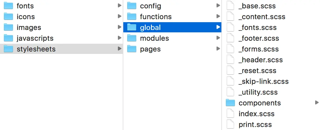 这是我们 HTTP/2 体系中最重要的文件夹。当我拆分样式到对应的模块,这个文件夹会包含非常非常多的文件。所以我从拆分每一个模块到子目录开始: