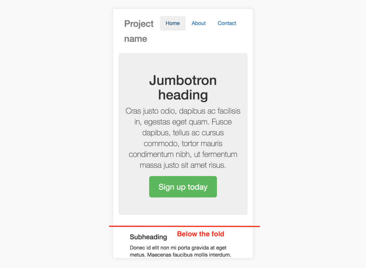 折叠以下(Below the “fold”)代表页面初始时不可见的部分。你可以异步加载这些内容,因为用户通常需要一两秒钟才能阅读完折叠以上的内容,尤其是在第一次访问站点时。