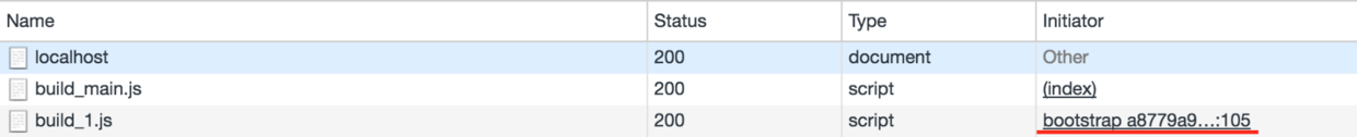 注意 build_main.js 这一栏的 initiator 值为 (index)。这意味着 index.html 请求了这个脚本,这正是我们所期盼的。但是 build_1.js 的 initiator 却是 bootstrap_a877…,这是 Webpack 脚本负责的异步加载文件。当你使用 Webpack 的动态导入功能,这个脚本会自动加入构建。最重要的一点是: build_1.js 不会阻塞初始页面的加载。