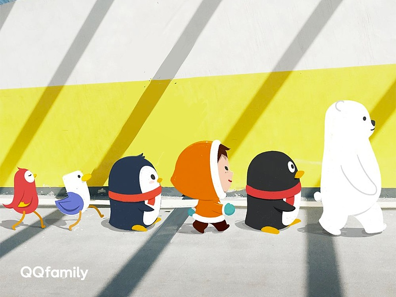 比如品牌吉祥物设计,以QQfamily为例,从企鹅到北极相关的人和物,灵感源于现实观察。