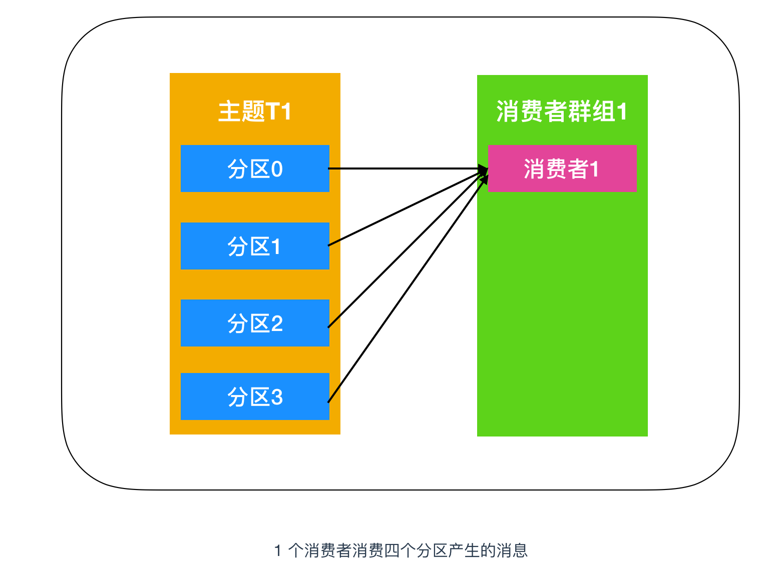 - 一个消费者群组消费一个主题中的消息,这种消费模式又称为