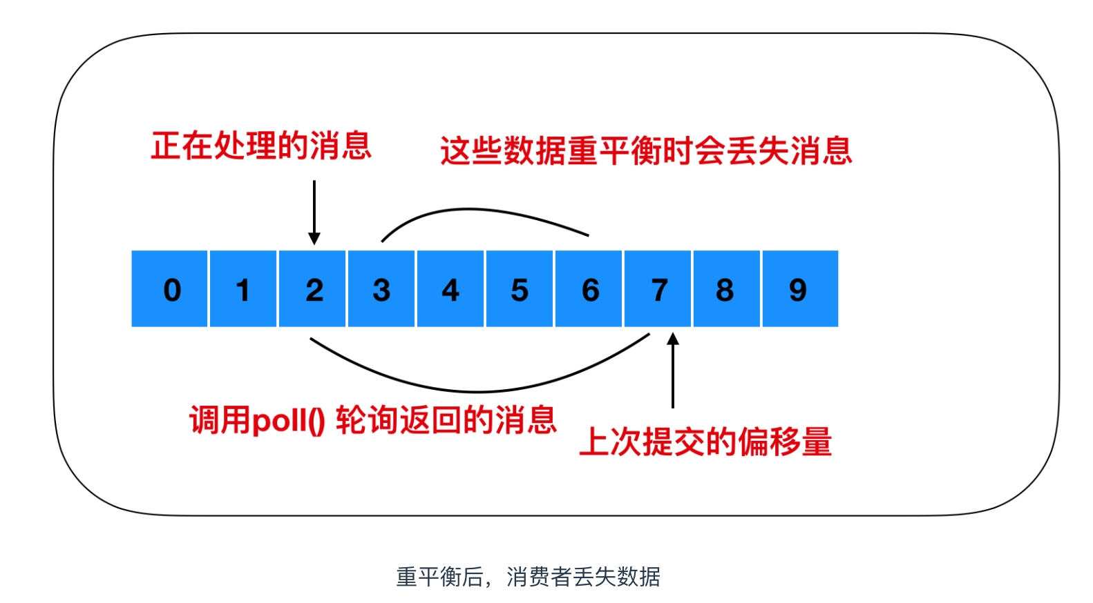如果提交的偏移量大于最后一次消费时的偏移量,那么处于两个偏移量中间的消息将会丢失