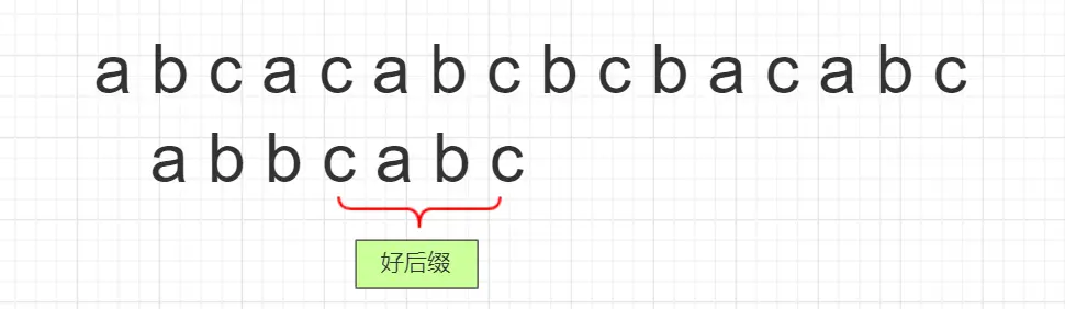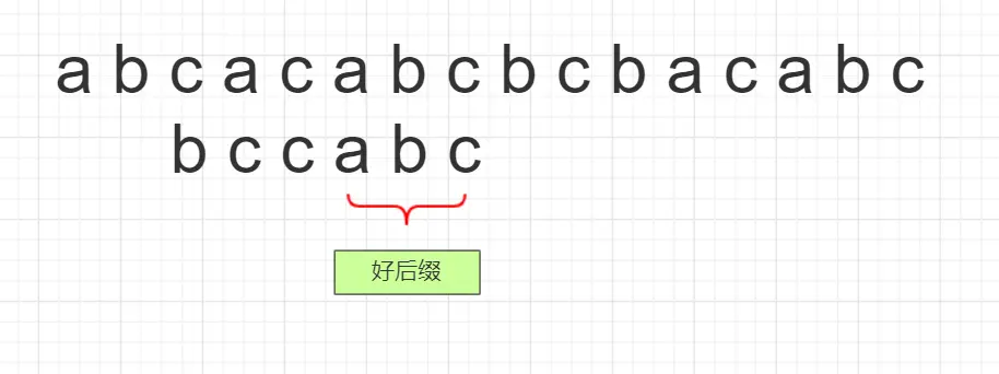 假设模式串为 bccabc 此时的好后缀为 abc 那么它的后缀子串分别是