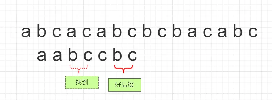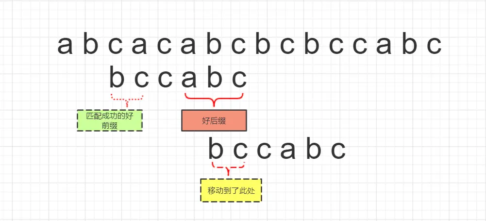 在模式串中寻找,是否还有与好后缀一样的字符串,如果有的话将其向后移动到之前好后缀的位置,如下