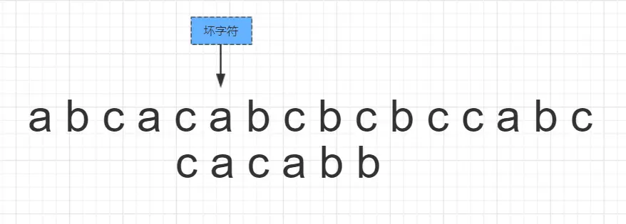 模式串中第一个跟主串不相等的字符(模式串倒序匹配),叫做坏字符(主串字符)