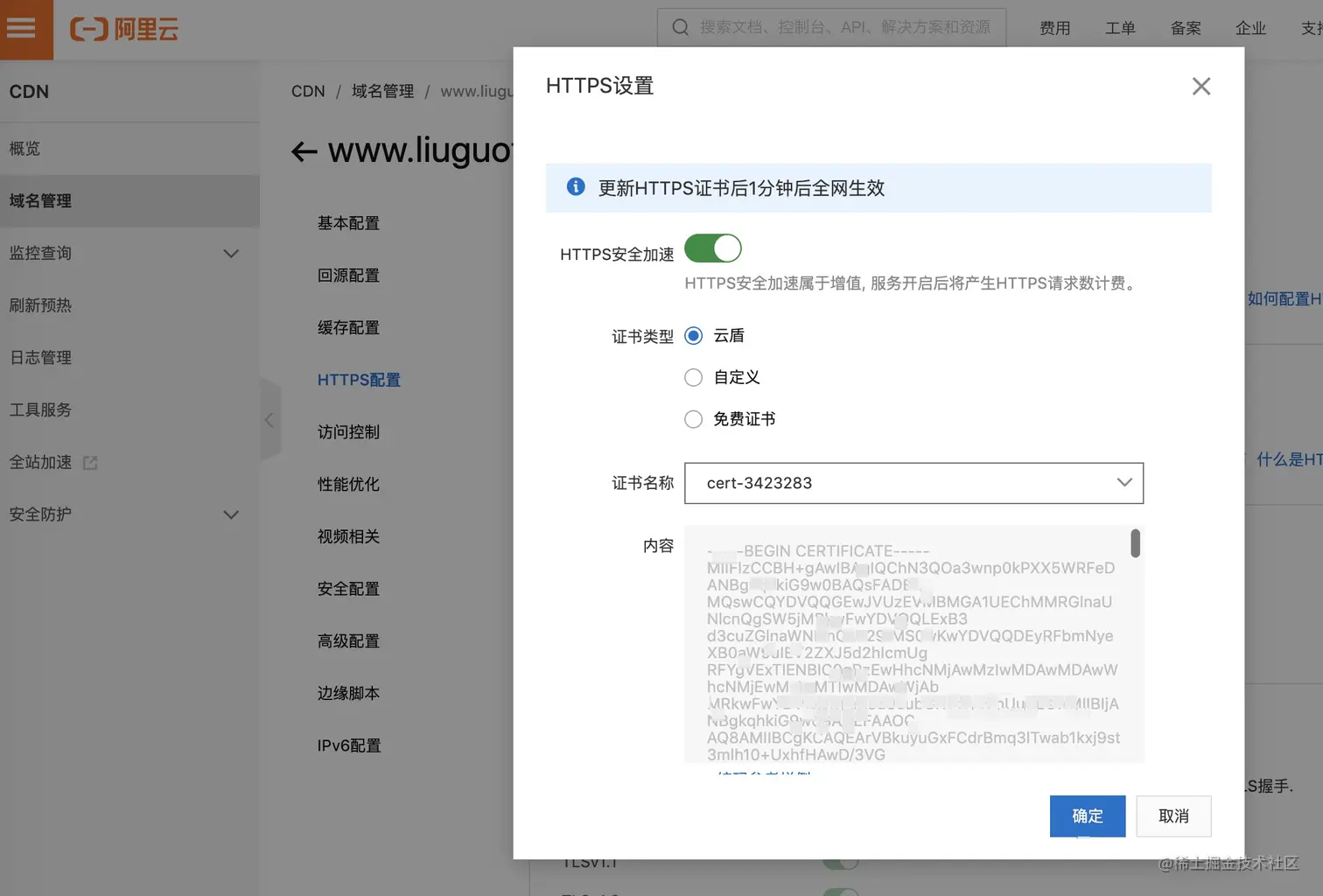 这里就简单的使用了阿里云的https配置,开启后域名的解析地址也要改成相应的#CNAME,就生效了,应该是也可以把证书下载下来在nginx服务器上进行配置,学习一下之后再更新