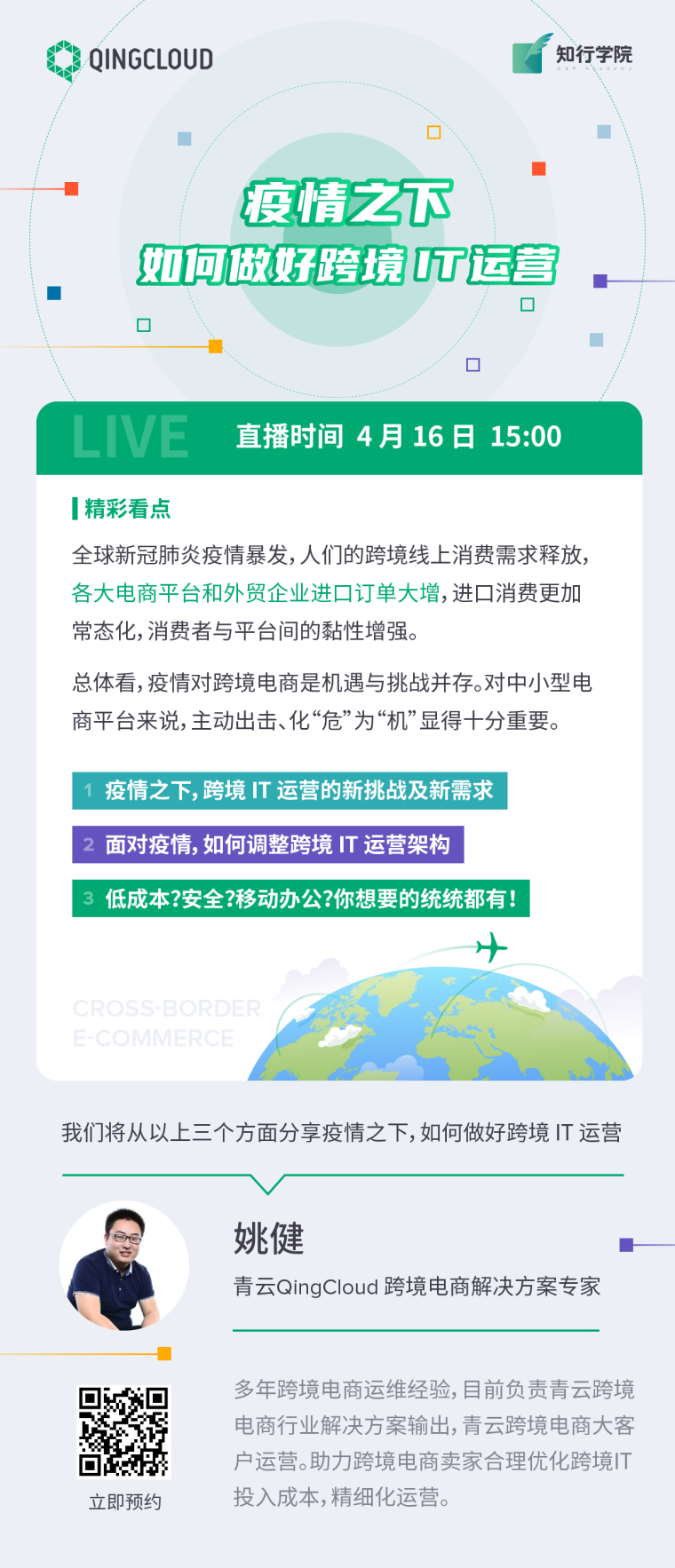 疫情之下,如何做好跨境 IT 运营 青云QingCloud 2020-04-09 441 阅读1分钟 对中小型电商平台来说,主动出击、化“危”为“机”显得十分重要。今天我们将从以下几个方面分享疫情之下,如何做好跨境 IT 运营。 疫情之下,跨境 IT 运营的新挑战及新需求 面对疫情,如何调整跨境 IT 运营架构 低成本?安全?移动办公?你想要的统统都有! 报名链接:live.vhall.com/134965210 更多内容可以访问 www.qingcloud.com