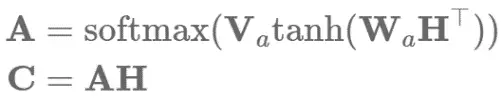 我们可以计算出注意力向量a和最终的句子向量表示c如下: