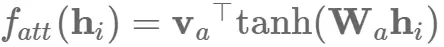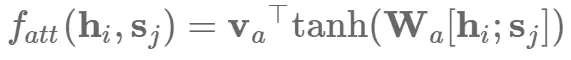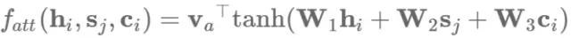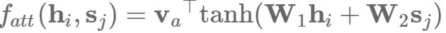 其中Va和Wa是学习到的注意力参数。相应地,我们也可以使用矩阵W1和W2分别对hi和sj作相应的变换,然后求和: