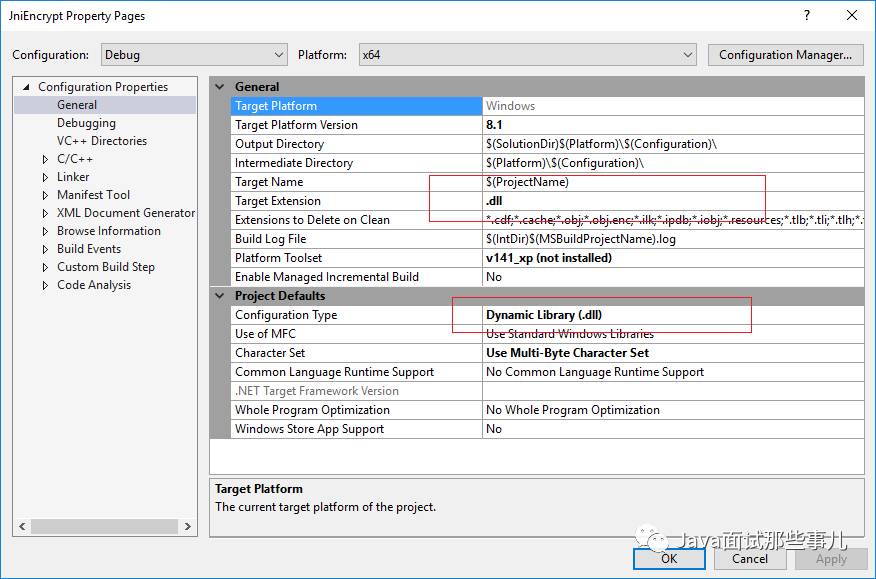 2.DLL的动态链接与静态链接(LINK)。实际上我们开发的DLL就是由Java进程动态链接入进程内存空间的函数实现的模块,动态与静态链接的区别在于,目标代码(指令)是否直接包含在了可执行文件中,这一点与Java开发中只包含了接口,将jar包放入java进程加载目录中来实现库的调用,还是直接将库的jar包直接打包到了生成包中的区别相似。这里作者提出DLL的动态与静态链接问题的原因是,如果采用动态链接,那么在不同版本的windows系统下,Java进程可能会弹出c++运行时库(msvcrXXX.dll)缺失的问题(相当于Java的ClassNotFound异常),所以一劳永逸的做法就是直接使用静态链接的方式来生成DLL。但 如果你十分确定Java的运行平台的运行时库版本,并且追求运行内存的最小化,那么这里可以采用动态链接的方式编译。