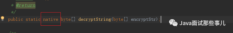 JNI的开发分为两个部分,一个是java层对于调用接口的定义,另一重要部分是C/C++动态链接库对于接口的实现(这里的接口并非指java中的interface,实际上申明的还是class)。Java部分接口的申明需要使用native关键字接口声明,并且需要必须声明为静态方法: