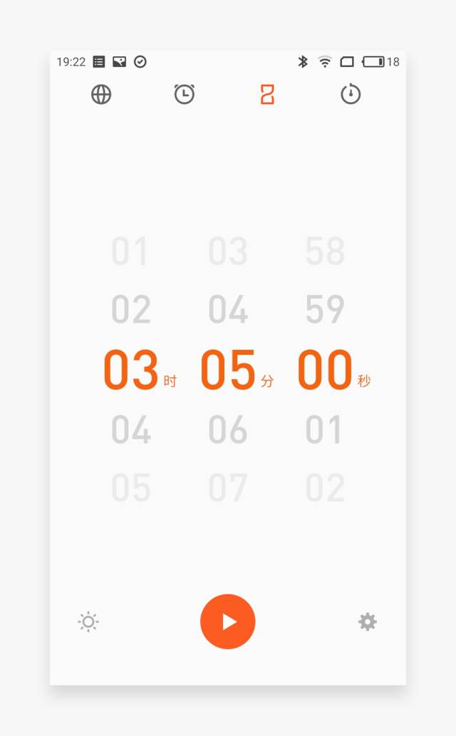 当我们思考下面这个页面的时候,除了看视觉效果之外,我们会发现上半部分,数字与图标有一部分空白的区域,在其其它竞品,例如三星的定时器页面,上半部分也有一块空白区域,如下图: