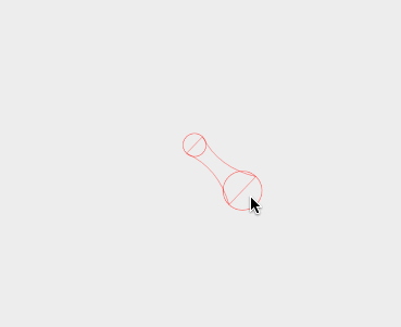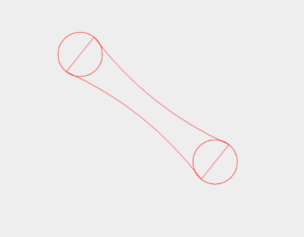 两个圆我们知道怎么画的了,现在就来分析一下连接带的实现,可以看到是两段平滑的过渡,这样的弧度使用贝塞尔再好不过了,我们在简单回顾一下贝塞尔曲线的样子