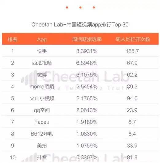 那么,快手在如此火爆的行业中占据什么地位呢?