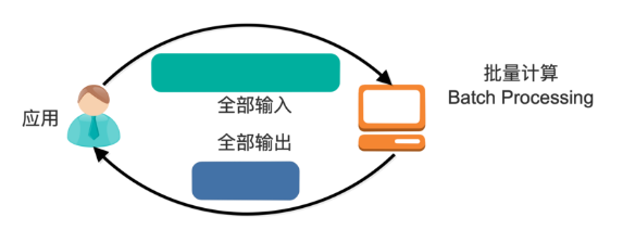 批量处理模型中,一般先有全量数据集,然后定义计算逻辑,并将计算应用于全量数据。特点是全量计算,并且计算结果一次性全量输出。