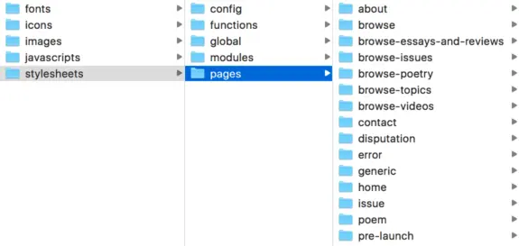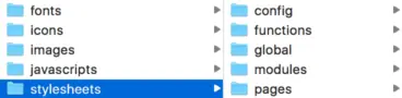 在我们的HTTP/2设置中这是最重要的文件夹。当我拆分样式到对应的模块,这个文件夹会包含非常非常多的文件。所以一个子文件夹就是一个模块: