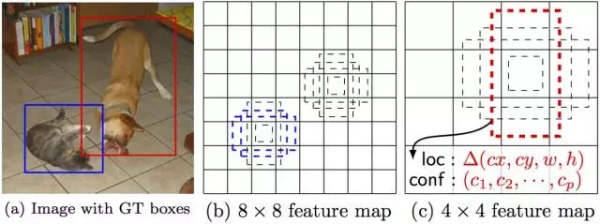 在更小的特征图中(比如 4x4),每一单元覆盖图像的一个更大区域,使其探测更大的目标。region proposal 与分类同时被执行:假设 p 为目标类别,每个边界框与一个 (4+p)-维度向量相连接,其输出 4 个框偏移坐标和 p 分类概率。在最后一步中,softmax 又一次被用来分类目标。