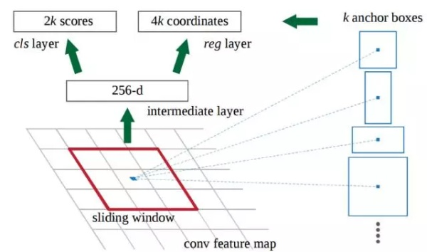 - 在最后卷积得到的特征图上,使用一个 3x3 的窗口在特征图上滑动,然后将其映射到一个更低的维度上(如 256 维),