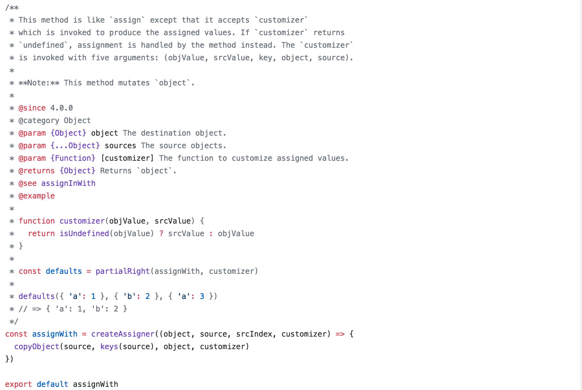 上图是使用了 jsdoc 的 Lodash 示例。