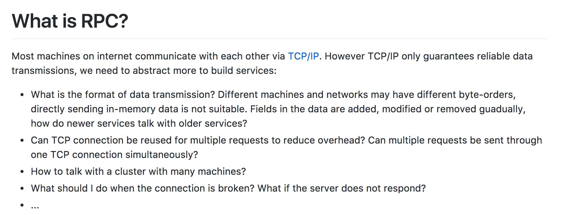 Most machines on internet communicate with each other via TCP/IP. However TCP/IP only guarantees reliable data transmissions, we need to abstract more to build services: