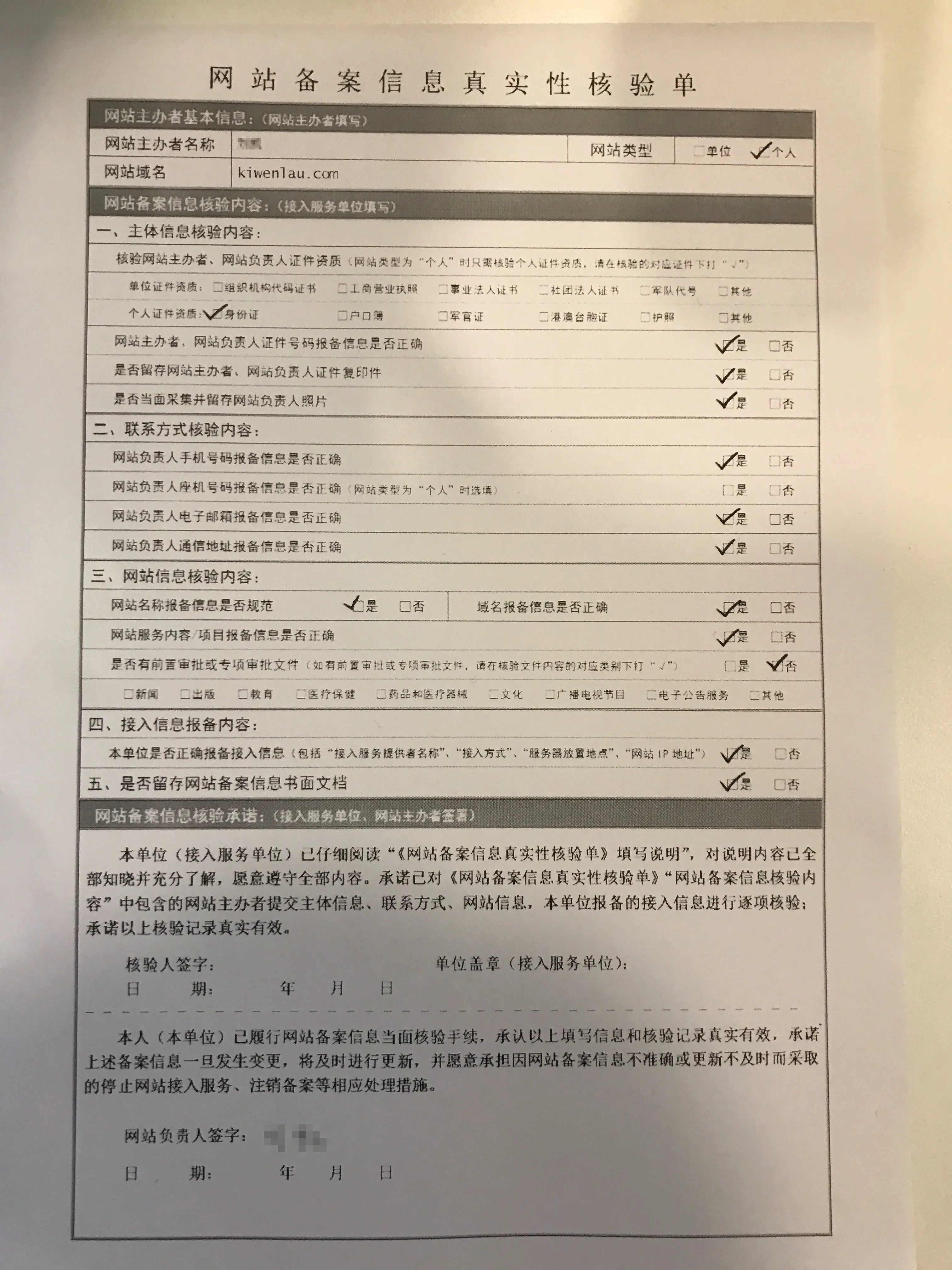 填完之后,需要打印《网站备案信息真实性核验单》,签字之后上传。