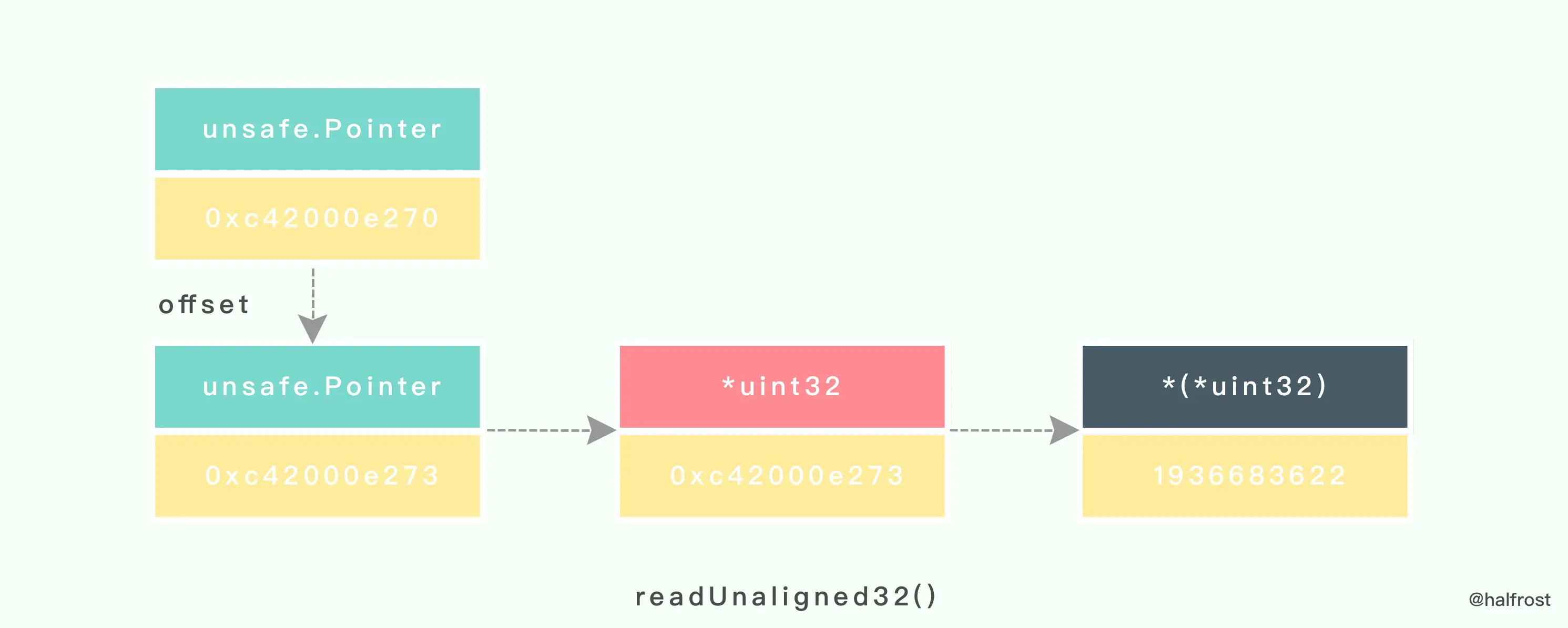 *(*unsafe.Pointer)(xk) = k2 // copy pointer