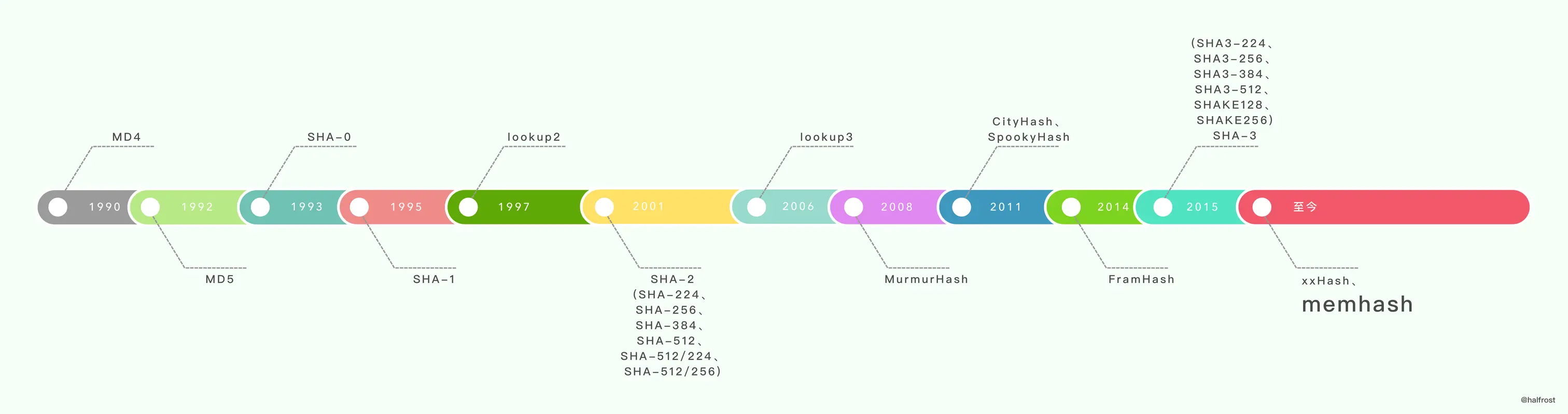 常用的 hash 函数有 SHA-1,SHA-256,SHA-512,MD5 。这些都是经典的 hash 算法。在现代化生产中,还会用到现代的 hash 算法。下面列举几个,进行性能对比,最后再选其中一个源码分析一下实现过程。