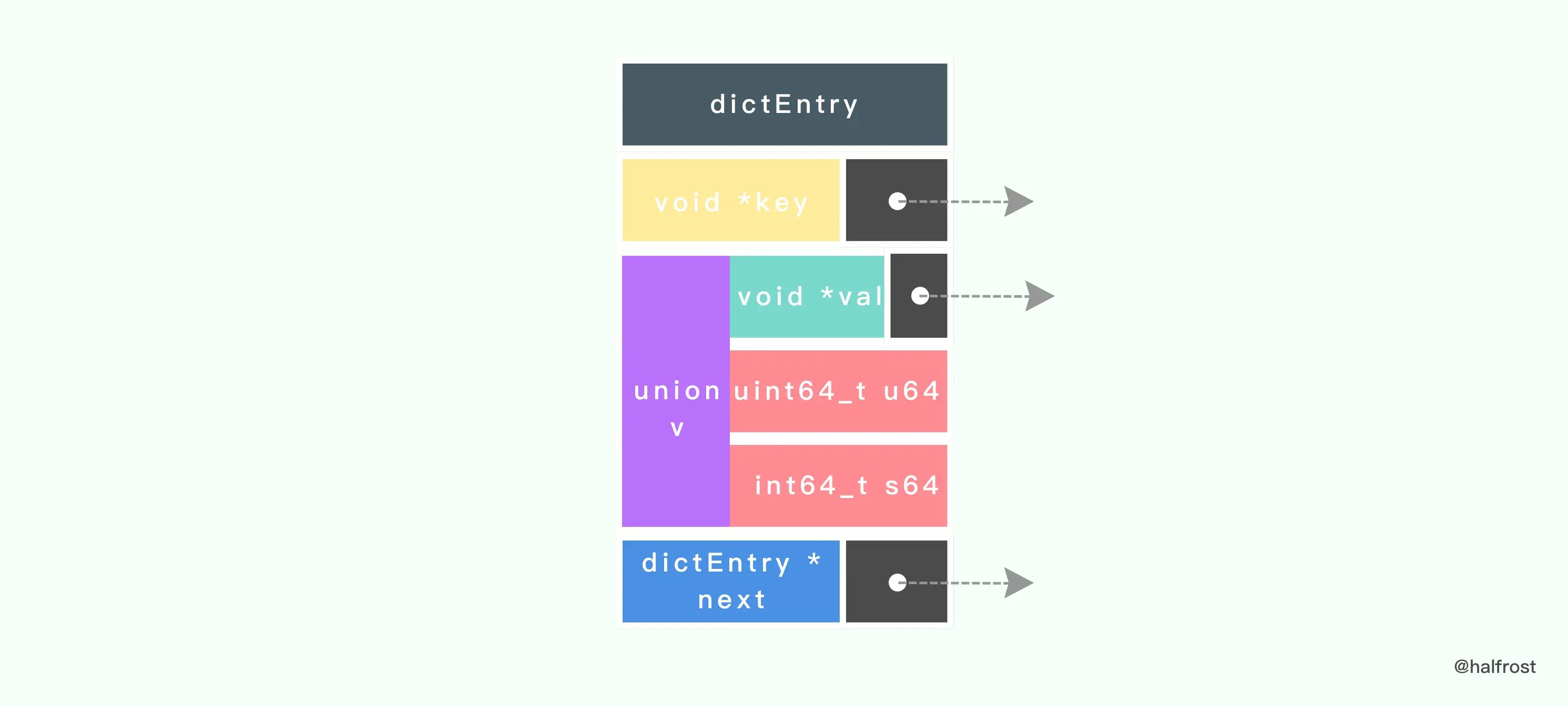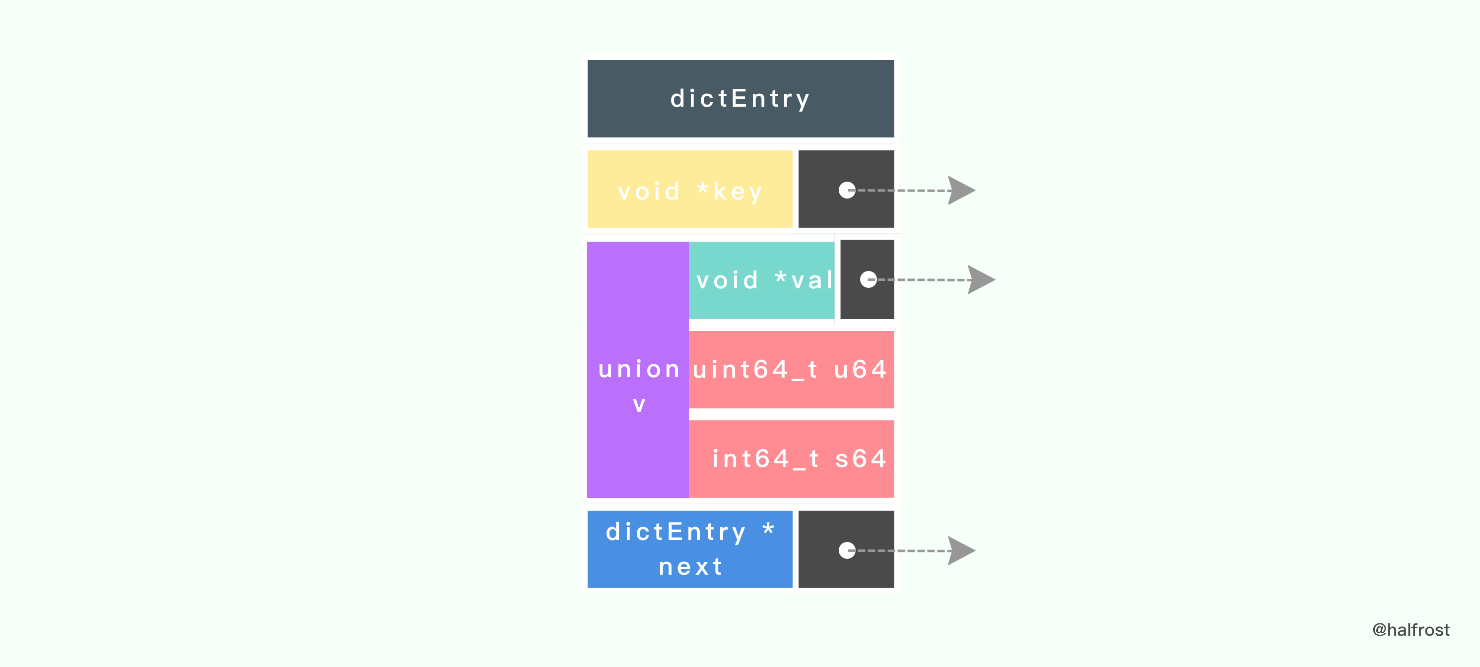 - key - value 的排列设计成 key 放在一起,value 放在一起,而不是key,value成对排列。这样方便内存对齐,数据量大了以后节约内存对齐造成的一些浪费。