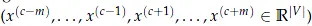 (vc-m =Vx(c-m), vc-m+1 = Vx(c-m+1), . . ., vc+m = Vx(c+m)∈Rn) -