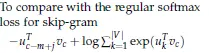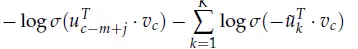 在给定中心词c和上下文c-m+j,对于Skip-Gram得到的新目标函数: